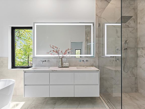 New construction! Introducing 74 Circuit Ave, located on a quiet side street in Newton Highlands. This exceptional modern unit, built in 2021, offers 4 bedrooms and 4 full + 2 half bathrooms within its 3300 SF of open concept living space. On the main floor, the kitchen, adorned with white gloss cabinets, is complete with Thermador appliances and an oversized island with seating for 5. An open concept living room boasts a gorgeous interior to exterior two way fireplace, which can also be enjoyed from your private stone deck. Bi-folding Andersen doors provide true indoor/outdoor living. On the second floor, a grand master bedroom features 17.9' ceilings, ample windows and sunlight, walk-in closet, and a luxe Italian porcelain clad en suite master bath. A fully finished lower level offers bonus space, a 2nd laundry room, 1/2 bath, and 4th bedroom w/ a full en suite bathroom. Private outdoor space, 3 deeded parking spots, no common areas. All that's left is for you to come and enjoy!