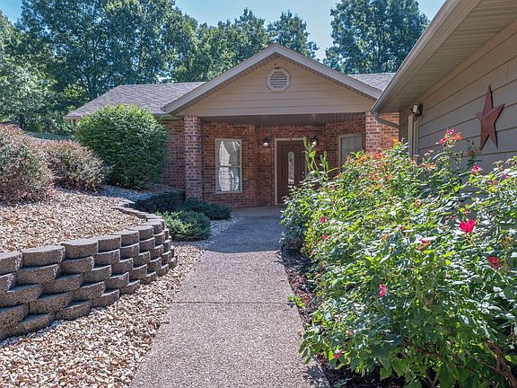 Welcome to Ozark Mountain Living! Immaculately maintained and move-in ready, this stunning home offers the perfect blend of comfort and country living. Set on over five acres with breathtaking Ozark Mountain views, this partial Earth Berm design features four spacious bedrooms, vaulted ceilings with exposed wood beams, a striking stone fireplace, and stylish flooring throughout. The kitchen has been tastefully renovated with modern finishes, stainless steel appliances, and thoughtful upgrades. No detail was overlooked--outside, your own private retreat awaits! The large patio, expansive composite deck, and shaded pergola create the ideal space for relaxing or entertaining against a stunning backdrop of the Ozark Mountains. The heated and cooled 2-car garage is a hobbyist's dream! This home truly has it all--space, upgrades, and unforgettable views!