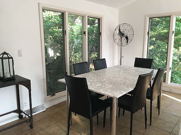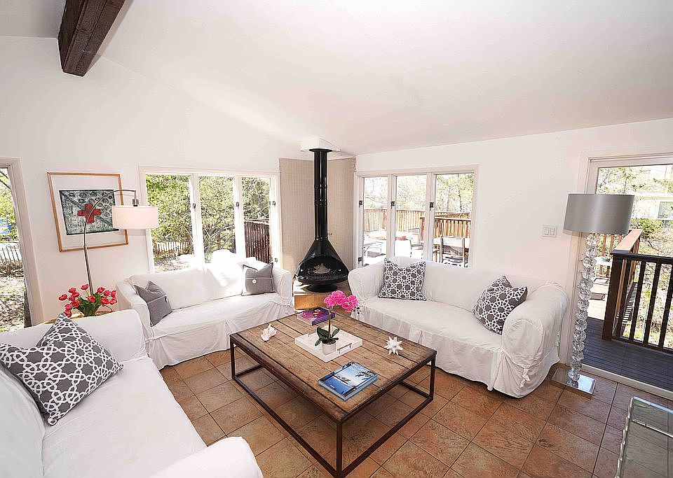 Get away from it all in a quiet, relaxing, and clean house two blocks from the ocean in the Amagansett Dunes. We're surrounded by natural beauty and have a lovely cedar hot tub that feels like a retreat to Japan or Finland. A big perk: Our neighborhood has a private beach. For direct-booking rentals with no agency or online fees, contact Laura at laurabegleybloom@gmail.com or 917-294-4444. LET US TELL YOU MORE! This spacious and welcoming Hamptons house is located in the prime Amagansett Dunes, south of the highway, two blocks to the ocean, and close to town. It's a family-friendly neighborhood with a private beach. You can often hear the ocean from the house. In 2018, we installed a beautiful cedar hot tub and renovated the kitchen. In 2019, we renovated the two upstairs bathrooms and the downstairs bedrooms. THE DESIGN This mid-century modern house was built by an artist in 1969. It has a comfortably stylish look—just the right mix of beachy and chic. It's open and airy and light, with tall windows overlooking the surrounding pines and dunes landscape. The house has approximately 2200-square-feet of living space and plenty of nooks for escaping. There's central air conditioning, but you may prefer to leave the windows open to catch the beach breezes and fall asleep to the sound of the ocean. There's a big, furnished deck that is perfect for alfresco meals. The retractable awning provides great shade over the table, which can expand to seat up to 12. Enjoy some time in our new cedar hot tub, which fits 4 adults comfortably. Or just catch some rays on one of the lounge chairs. This is an upside-down house, with the living areas on the upper level, which gives the feeling of being in a very lovely treehouse. Inside, you will find an open plan living/dining area, decorated with crisp white slipcovered furniture. There's also a bright sitting area that is the perfect place to curl up with a good book or watch TV. The kitchen is fully stocked with everything you need for cooking and entertaining. The house is equipped with WiFi and a Sonos system, as well as TV/cable. We also have two beach bicycles for your use. THE VIBE This is the kind of laid-back beach house where you can leave your surfboard propped against the house, put your feet up on the coffee table, and host a great dinner party. It's perfect for families, beach lovers, and adventure buffs who can spend the day swimming, biking, kayaking, stand-up paddling, exploring, or just relaxing. Foodies will love the assortment of chef-quality grills (gas, wood pellet, wood-fired). You can make meals using produce from the local farmstands and shellfish caught that morning at low tide. The perfect end to a perfect day? A bonfire on the nearby ocean beach. LOCATION We're in the prime Amagansett Dunes, and the beach is an 8-minute walk away (just a couple minutes on a bike). It's a private ocean beach that's accessed via two deeded entrances for neighborhood residents, which means it's always uncrowded. It's just a few minutes' drive or a 30-minute walk to the center of Amagansett. BEDROOMS/BATHROOMS There are four bedrooms. Two are upstairs; the other two are on the ground level, which is accessed by a spiral staircase. The two downstairs bedrooms open to a terrace with a table and chairs where you can have a coffee under the canopy of trees. There are three bathrooms (two up, one down), plus an outdoor shower. PLEASE NOTE: Rentals are subject to East Hampton town regulations, which prohibit more than 4 unrelated adults, so group shares are against the law and strictly not allowed. We prefer to rent to families.
