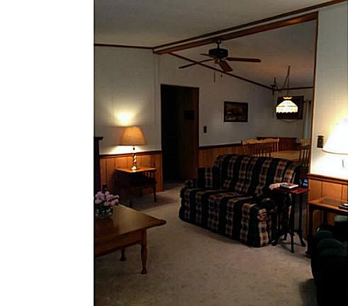 55+ COMMUNITY LARGER UNIT 1404 SQ FT, 3 BED, 2BATH, 2CAR GARAGE,NEWER APPLIANCES,HEAT 2 YEARS OLD,CENTRAL A/C,FIREPLACE,SPACIOUS OPEN FLR PLAN.MONTHLY FEE OF $360 park fee includes lawn, snow etc.. Buyer to pay $1500.00 share fee to Park up to $4500