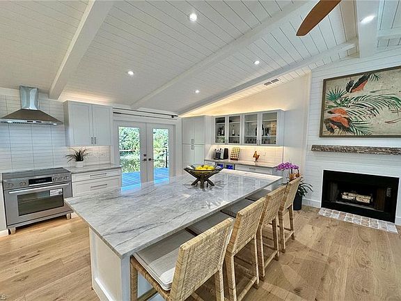 The secluded and completely updated Key West-style home features two stories of sophisticated coastal casual living perfectly situated on a huge and private .72-acre corner lot. Walk to the Naples Botanical Garden or bike 2.5 miles to 5th Avenue, and the restaurants and beaches of Old Naples. The main level reveals an open concept space that includes a living room with fireplace, gourmet kitchen with quartzite countertops, high-end Bosch appliances, hardwood and tile flooring throughout, spacious master bedroom with spa-like bathroom, two additional guest bedrooms and full bath. The ground level boasts an additional master suite with private deck and finished two-car garage and multi-purpose room. The backyard oasis, bursting with an abundance of wildlife, overlooks the fish-stocked pond and natural preserve. To complete the resort-like feeling of outdoor living, enjoy the Tiki hut or gas fire pit that are the perfect backdrop for entertaining. This home did not sustain hurricane damage.