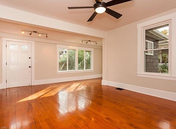 Renovated North Asheville Classic bungalow . Completely updated- this sunlit home is move-in ready. New eat-in kitchen w/ breakfast bar, butcher block countertop and dining space w/ vaulted ceiling. Updated electric, energy-efficient windows, new bathrooms and fixtures. Hardwood floors throughout. Gorgeous back deck overlooks fenced yard and woods. Walkout daylight basement has potential to finish for extra sq footage or apartment. Fabulous, walk-able location- minutes to Downtown or UNCA.