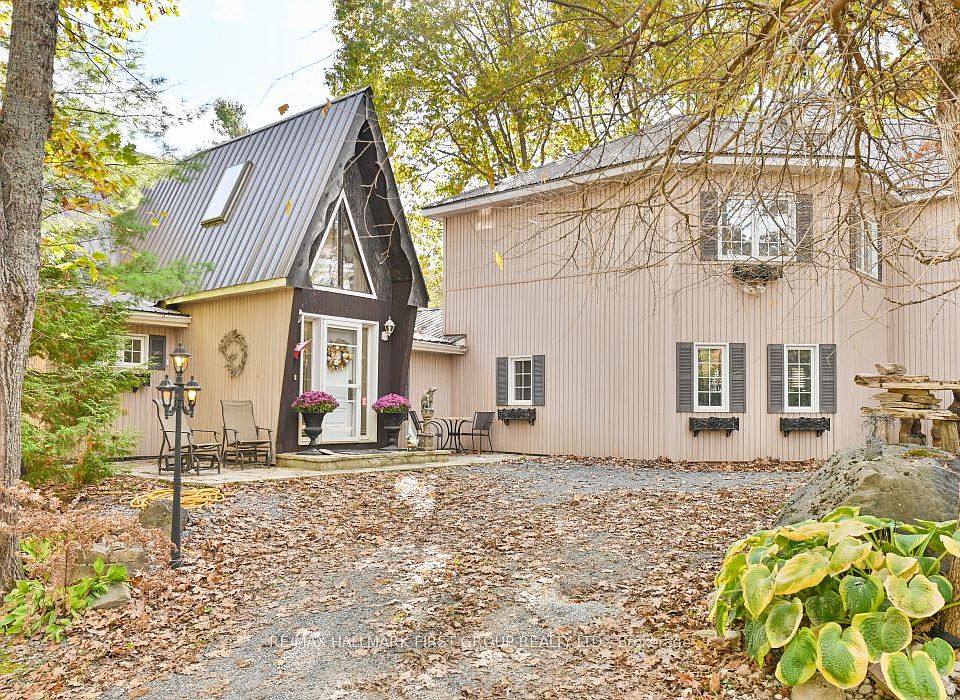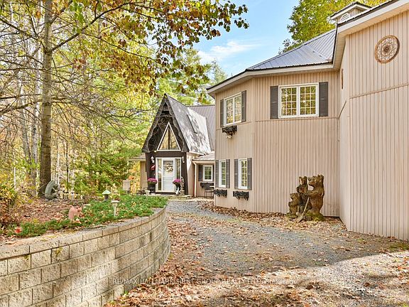 ONE OF A KIND CUSTOM ARCHITECTURAL DESIGNED HOME ON THE BANKS OF THE MAJESTIC BLACK RIVER! A truly unique gem that must be seen to be appreciated. Full of Character and Charm throughout features custom millwork, timber beams, cathedral wood ceiling designs, stain glass window pieces and custom fireplaces mantle and more! This stunning 3,500 sq foot home is perfect for families that need space, features 4 Bedrooms & 5 Bathrooms. Original home built in 1984 with rustic charm and large addition added in 2001, intricately crafted masterpiece designed by the owners. Includes options for separate living quarters & space for income or in-laws. Beautiful spacious formal dining room with garden doors leading to deck overlooking the water. Primary Suite on main level features crafted wood beams, custom octagon shaped space, lots of natural light & walkout to deck, large walk in closet plus 5 PC bathroom. Grand staircase with stunning stain glass window & custom cathedral wood ceiling design leads to upper level family room or large studio space with lots of natural light. Main level area with cozy propane fireplace with custom mantel & wood beams, open to eat-in kitchen area filled with natural light from the skylights. Circular Staircase to upper level which provides 2 bedrooms & full bath, 1 bedroom with it's own balcony. Main level laundry room includes new washer & dryer. Extra workshop area for storage has two separate entrances includes mudroom area & bathroom. Enjoy the peace and serenity of the calming sound of the river flowing from multiple decks and balconies that offer a perfect spot for relaxing & enjoying your morning coffee. Cozy screened in gazebo to unwind in nature & listen to the flowing rapids! This well maintained home is move in ready, metal roof, new septic in 2021. Looking for a piece of paradise, large family home, getaway/sanctuary or air bnb, this property is a must see! Located just off Highway 7, Close to Tweed for all amenities. Priced to sell!