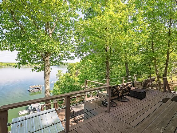 Smith Lake (Simpson Creek) An amazing 2BR/2BA cottage with beautiful views of the lake! Open floor plan, shiplap, hardwoods and tile throughout with many updates. All season sunroom, covered outdoor dining area, and comes completely furnished! Boat dock with upper level and swim pier. What a great location on the lake! So very close to I-65! Tram works great to the water.