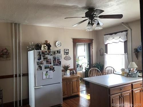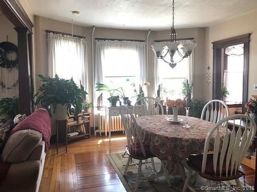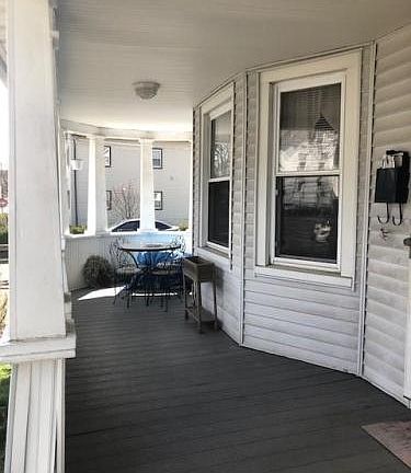 Beautiful and spacious three bedroom, 1st floor apartment available with hardwood floors throughout + updated kitchen and bath. Unit features an open floor plan, ceiling fans, dishwasher, all kitchen appliances and newer windows. Washer and dryer in unit (incl.. Covered front porch + nice back deck. Plenty of off street parking available and private back yard area. Pets considered. Owner takes care of lawn maintenance and snow removal. Tenant is responsible for H, HW and electric. Quiet side street with great highway access. Nothing to do but move in