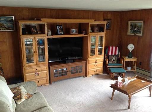 Very well maintained hip roof ranch on a quiet street with a double lot close to commuter rtes. Spacious eat in kitchen with new stove, dining room open to living room perfect for entertaining. Full finished basement offers over 700 square feet of additional living space with family room, bedroom, bath, and office. Some recent improvements are vinyl siding, gutters, windows, new boiler and hot water storage tank, and new bulkhead. Oversized two car garage attached and three season porch overlooking private lot. All appliances stay. Take a look!