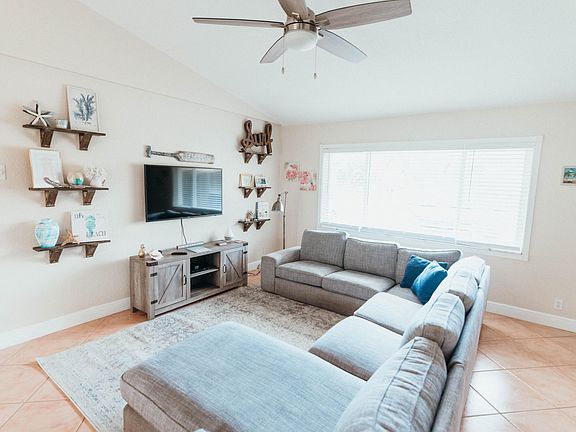 The Pink Hibiscus is a spacious, 3-bedroom, 2-bathroom single-family home in West Lake Worth, available October 1st as a seasonal rental. This furnished home has a coastal decor throughout, a screened-in back patio, a private yard with a fire pit, and two car garage converted into a fitness room close to Wellington Polo Fields, Lake Worth Beach, and great shopping and eating. Brand new roof and impact windows. $3000.00/mo, includes utilities. No pet $1000.00 move-in fee, dogs only, $3000.00 move-in fee. Seasonal lease, minimum 6-month rental, available October 2022- June 2023. The owner pays water, electricity, internet, and lawn care. No smoking or pets allowed.