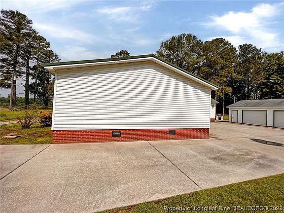 Someone's dream just came true! Need shop space? 4 car tandem high door and high roof garage attached with FROG currently set up as a bar/rec room. And ANOTHER detached two car garage. The small two car garage is even on a separate meter. There's so much room for activities whether yours is woodwork, metal shop, mechanic, landscaping, whatever. Huge concrete pad adjacent to all garages for even more ease of equipment use. You won't see one like this very often unless you build it yourself. Besides the garages, home has 3 bedrooms in a split floor plan with master suite having double door bathroom and vanity and garden jetted tub. Spacious dine in Kitchen and HUGE den with fireplace. Great location, just minutes to I-95 and quick easy access to destinations north and south. 15 minutes to Lumberton, 20 Minutes to Fayetteville, 1 hour to Pinehurst. Country living and cornfield view.
