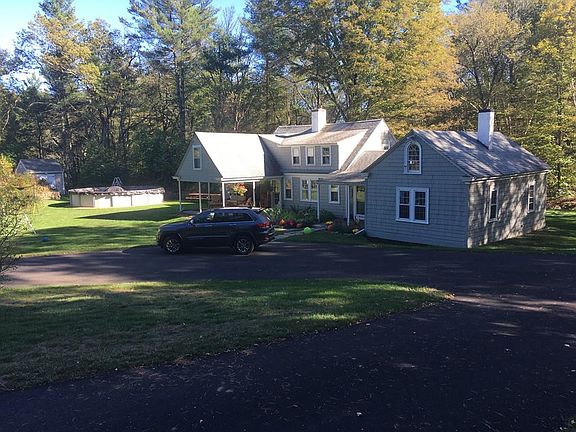 Set on a quiet country road, minutes from the antique shops and restaurants of downtown Sturbridge, this meticulously restored New England Cape perfectly combines historic detail and charm with today's important amenities. Recent updates include new furnace, hot water heater, central air, updated kitchen and bathroom, paved driveway, above ground pool, and much, much more. Inside the 10 room, 1,992 square foot home, contains two full bathrooms and four bedrooms. There are two chimneys, one with a new wood stove insert to fight away the winter chill. There is a carriage house measuring 34' x 24' which has been restored to be used as a two car garage or a workshop. There is a second floor for storage. Another recent improvement is a 10' x 12' shed with a loft that can be used as a pool house or storage. The house is located on 3.71 acres which abutts by Lake Siog recreation area. There is a path down to the lake which has a beach for summer fun. There is a private backyard with a pool. A