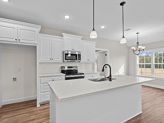 Discover the Douglas M, a thoughtfully designed floor plan offering 1,399 sq. ft. of heated space with modern features throughout. This 3-bedroom, 2-bathroom home features a spacious open-concept living and dining area, perfect for both everyday living and entertaining. The primary suite is privately situated, offering a large walk-in closet and a luxurious bathroom with a garden tub and separate shower. Enjoy the convenience of a two-car garage and a covered rear porch, ideal for outdoor relaxation. Located in the sought-after Chapel Hill subdivision, this home provides easy access to Oak Grove schools, shopping, and dining.