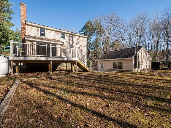 Completely RENOVATED in HAMPSTEAD! Two words that you do not hear often. You no longer have to settle for an old, outdated house to live in this beautiful town! This 3 bed, 2 bath, garrison colonial style home just underwent a very extensive and meticulous renovation. Sitting nicely on a wooded 1.88 acre lot with almost 2500 total finished sq ft and three floors of living space. A brand new driveway leads you to a one car under, as well as a more recently built, 26'x26' two car detached workshop/garage with a wood burning stove. Off the rear of the house you will find a new, 18'x18' composite deck. The finished, walk-out basement serves as the entrance from the driveway and has plenty of space for a home office, playroom or both. On the first floor you will find a a large bath with laundry, living room, formal dining, as well as a large eat-in kitchen. The new kitchen has white shaker style, solid wood cabinetry, high end quartz counters, imported tile back splash, brand new Samsung appliances, including a slide in gas range, a custom built-in coffee/bar and custom made solid white oak shelving. Upstairs, you will find 3 bedrooms including a large, front to back, primary bedroom with it's own walk in closet. The brand new upstairs bath has a tiled tub surround as well as a solid white oak, marble topped, double vanity. New vinyl Harvey, double hung windows. High efficiency propane heat/on demand hot water. Truly a turn key home in a highly sought after town and school system.