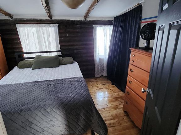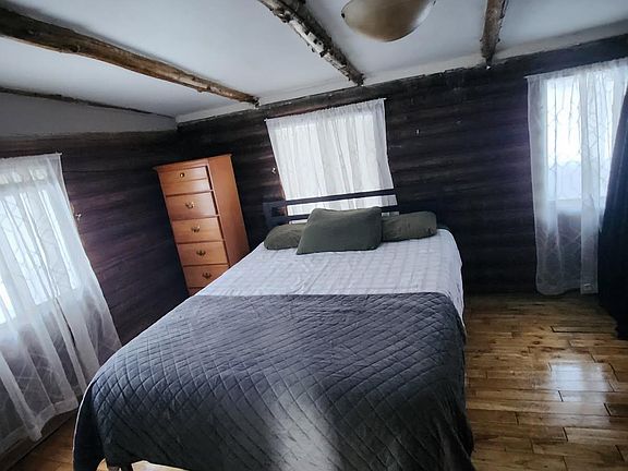 The camp includes garage parking a lot of hardwood floors and expose logs!! Its very cute and a great place to sit and enjoy the backyard or lake access!