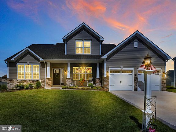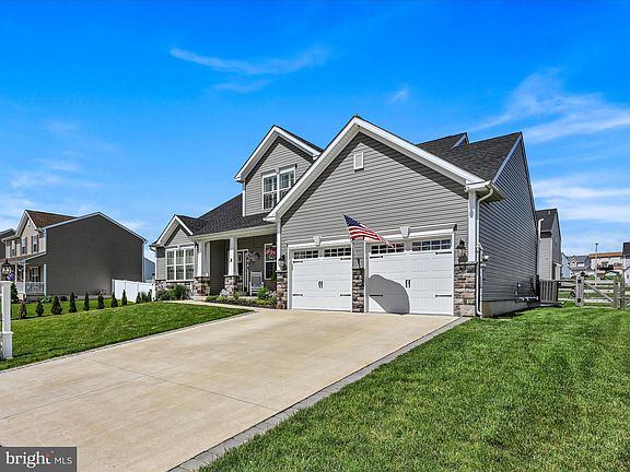 This Nantucket model spans over 2,500 square feet, built in 2020 and brimming with numerous upgrades, beginning with the accentuated stone columns adorning the front façade. Step into the two-story open foyer, welcoming you with its spacious layout. To the right, upgraded French doors beckon you into a versatile sitting area, ideal for an office or formal dining room. Continuing beyond, you'll find a sizable breakfast area adjoining the well-appointed kitchen. Enhanced with a 4” granite backsplash, 36” wall cabinets, and base cabinets, the kitchen also features a central island with an overhang, perfect for both cooking and entertaining guests. The kitchen leads to a fenced backyard with a spacious covered back patio, complete with a built-in firepit, providing an excellent space for gatherings. Delight in the great room's vaulted ceilings and gas fireplace, creating a warm and inviting atmosphere. The primary bedroom, located on the main floor, offers vaulted ceilings, a walk-in closet, and a spacious primary bathroom. Head upstairs to discover a balcony overlooking the great room, along with 3 additional generously sized bedrooms, ample closet space, and a full bathroom. This home also features natural gas heating, an active radon system, a sizable unfinished basement with an egress window awaiting your personal touches, large shed, and a two-car garage.