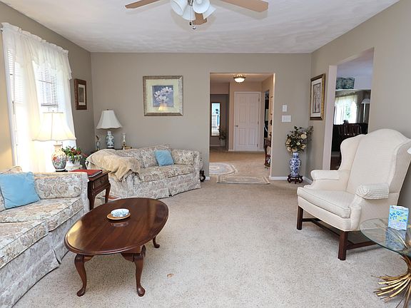 Discover this sprawling ranch, where double front doors greet you, leading to a warm entryway, and easy first floor living. Enjoy four light-filled bedrooms and four baths on the main level, including a luxurious master suite with an epic walk-in closet and a spa-like attached bath featuring a built-in vanity. The in-law suite includes a convenient kitchenette. The lower level boasts a spacious rec room and a cozy living room with a wood-burning fireplace. The gourmet chef's eat-in kitchen, complete with a large island and prep sink, flows into a living room with a gas log fireplace. French doors open to your Staycation patio, while a covered front porch invites you to relax. With an all-brick exterior and dedicated office space, this home has it all, don't miss your chance!