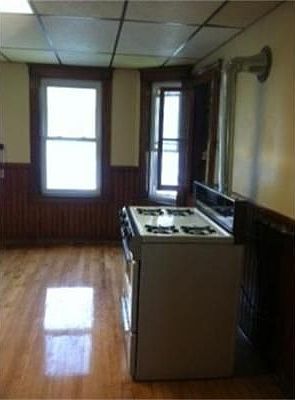 The apartment is fully renovated; new bathroom, new windows, new sheetrock and paint, refinished hardwood floor, rebuilt porch. There is a grammar school by the end of the St, about 5 m. walking distance and Green Hill Park is on the other end about the same distance. The house is at the end of the St. and the neighborhood is quite. Most of the houses around are single family houses. The lot size is big, 0.23 acre, and in the near future there will be a good size parking lot.