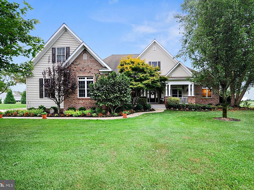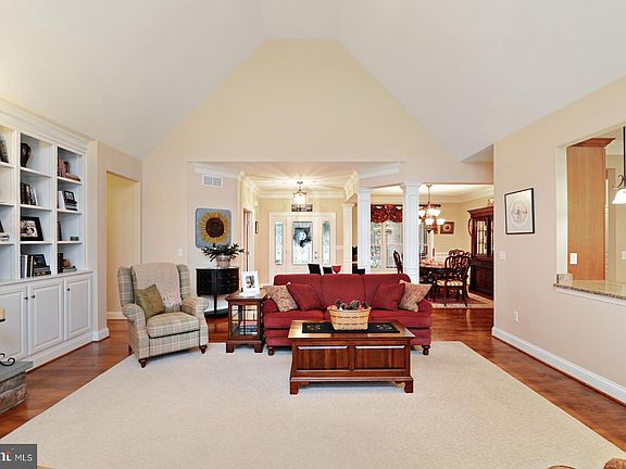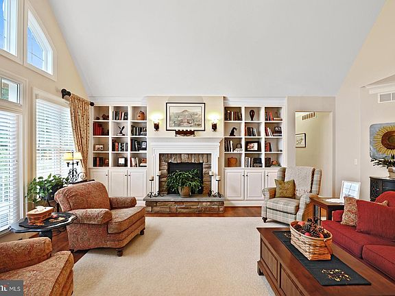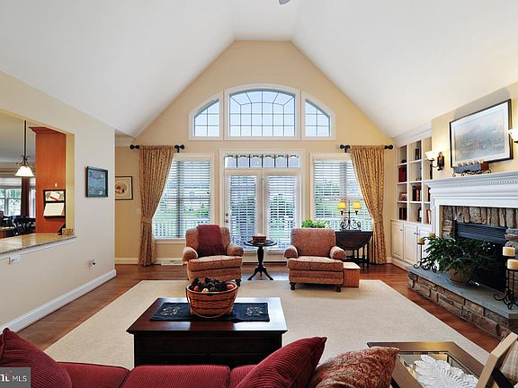 This elegantly appointed custom home in Townsend Fields has it all. Situated on a 3/4 acre corner lot, the home is as inviting as it is spacious. Entering the foyer, you are welcomed by an abundance of hand-finished hardwood flooring which is carried out through most of the entry level. Continuing on, you enter the sunny great room with cathedral ceilings, gas fireplace including stone surround, custom built-ins, a wall of windows, and access to the rear outdoor living space. Adjacent to the great room you will find the chef's kitchen featuring cherry cabinetry, granite tops and upgraded stainless appliances that include a double wall-oven and gas cook-top. Additionally, the kitchen boasts breakfast bar seating and is open to the eat-in area and large family room where you will find the second fireplace and custom built-in surround. On this main level there are also two additional bedrooms with shared full bath as well as a separate home office or sitting room. The upper level is complete with a massive 20 X 23 bedroom with sitting area, full bath and large walk-in closet. In addition to the lengthy list of amenities and upgrades, this home features a finished basement ideal for entertaining where you will find a custom-built bar with built-in refrigerator, a massive family/game room, two separate flex rooms with large closets, a full bath, and additional storage. This home has been meticulously cared for and is one to see, without a doubt.