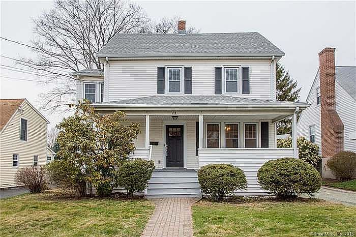 Check out this renovated farmhouse style colonial with a classic front porch! The light and bright interior has fresh neutral paint, brand new windows, gas heat, a newer furnace and new roof! Enjoy a spacious formal living room and dining room and the beautiful refinished hardwood floors throughout. Updates include a new powder room and first floor laundry. The new kitchen has eating space plus stainless steel appliances, recessed lighting and wood cabinets with under-cabinet lighting. There are 3 bedrooms and a full bath on the second floor. There is a 2-car detached garage and the brand new driveway will be paved around May 10th. This great location is in the popular Smith STEM school area and offers easy access to the highway and is just one mile to Blue Back Square and West Hartford Center. Great updates coupled with vintage charm make this home a great value!