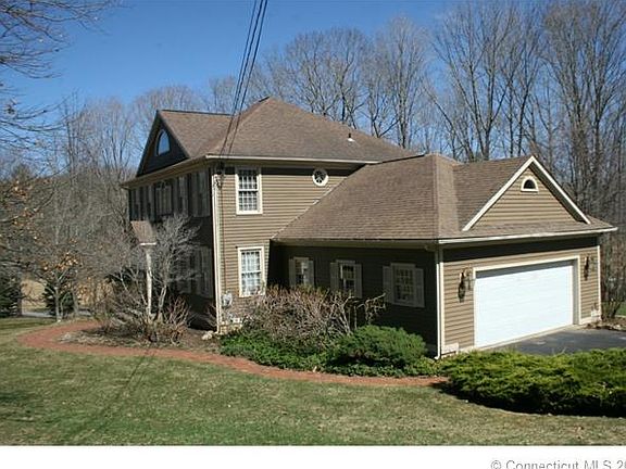 This home is truly magnificent, with an open concept floor plan including a double sided floor to ceiling fireplace between the living room and the vaulted ceiling family room. Beautiful oak hardwood floors, tile and granite are throughout with solid wood cabinetry in kitchen, all bathrooms, and laundry. The kitchen is spacious with a stovetop island, generous cabinet storage and a pantry. A dining area and snack bar flow from the kitchen leading outdoors to the deck and pool; a perfect home for entertaining lots of friends and family. Abundant natural light enters the house through low hung windows. The bedrooms are well sized and afford privacy in all rooms. The stairway leads to a wide hallway and overlooks the foyer below. Beautiful mature landscaping with a lightly wooded border frames the large level yard with a babbling brook. The deck is flush around perimeter of the above the ground pool. Easy access to Hartford, Boston, UCONN. A country setting minutes to I-84. Call on this meticulously maintained family home. This home is truly magnificent. From the double sided glass fireplace to the vaulted ceiling in the LR, this home has it all. Beautiful hardwood floors, granite counters in the kitchen, island with cooktop, formal DR and plenty of space in the kitchen with semi-formal dining area and access to back yard. There is plenty of natural light entering the house from the low hung doublepane windows, the bedrooms are super sized and well placed for privacy. The staircase to the second floor is unique and the landing is a plus. You need to come and see the landscaped grounds, the great deck and hear the roar of a bubbling brook nearby. Very accessible to I-84, UCONN, Hartford and Boston. Call on this one!!