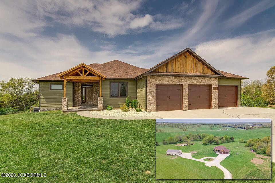 If your heart yearns for the inviting rustic elegance of mountain style architecture, you will feel instantly at home in this custom 5 bdrm, 4 bath beauty, situated on ten acres complete with a fishing pond, in western Osage County. The 52x30 detached garage with guest quarters/apartment provides space for all the toys and projects.