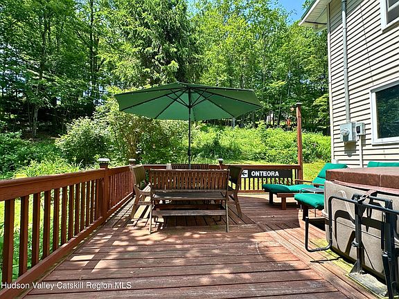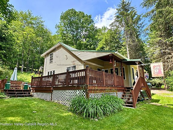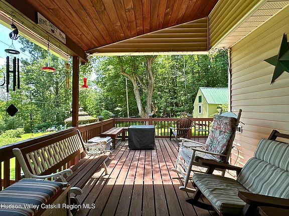 Camp Fronckowiak Catskills Getaway with All the Good Stuff - Just Minutes from the village of Margaretville! Welcome to your ''keys + kayaks'' upstate escape! Minutes from the heart of Margaretville, this 4-bedroom, 1.5-bath home is the perfect blend of cozy charm and outdoor magic—with all the extras that make it move-in ready. Inside, you'll find a spacious open-concept kitchen and living area anchored by a stone fireplace—ideal for snowy weekends, game nights, or just vibing with your beverage of choice. The sun room adds flexible space for reading, remote work, or plant parenting. There's tons of storage throughout, and updates like newer siding and a metal roof mean less upkeep, more chill. But it's the outside that really shines. The wrap-around deck features a hot tub and room to entertain your entire crew. Think: summer BBQs, fall foliage hangouts, and après-ski soaks. Mature landscaping brings the beauty and privacy, and the yard includes not one, but two sheds, plus a gazebo and a firepit for full-on Catskills campfire moments. And it gets even better: This place is being sold completely furnished—yes, including the ATV with a snowplow (no shoveling!), riding lawn mower, two kayaks, and more. Just bring snacks and a weekend bag. Whether you're dreaming of a personal retreat, a weekend rental, or your forever upstate basecamp, Camp Fronckowiak checks all the boxes.