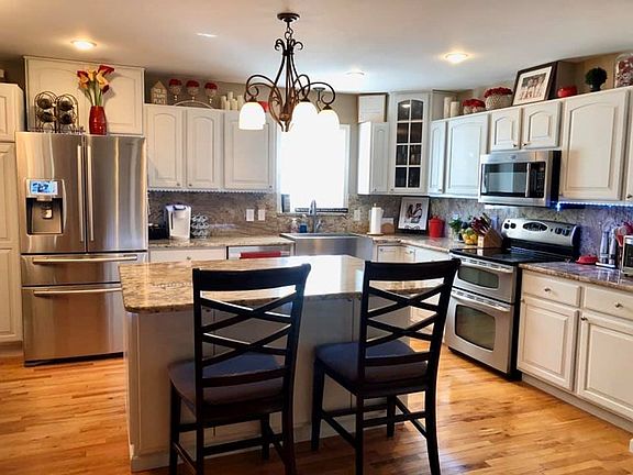 74 General Woods Addition, Spencer - Spectacular cape cod 4 bedroom/4 bath home perched on 5 acres +\- with pond and privacy. Home presents an open concept plan that includes 2-story foyer, family room, custom kitchen (granite counters, Island and backsplash and all stainless steel appliances) and formal dining room. Upstairs master suite offers open balcony home office area and sensational, spacious master bath with jetted garden tub, shower, and modern bowl double sinks. The exposed basement floor consists of a family room with stone fireplace and custom bar with stone and ice block accents. There is an additional bedroom and bath in the basement level as well as a home gym (all gym equipment and tanning bed included) and one car garage/storage room. Other high end bonuses include attached (newly constructed) double car garage with Swisstrax flooring, poured concrete wall with equal storage space below garage and a custom commercial kitchen for catering and or meal prep business! Finally the massive covered rear trek deck includes an outdoor kitchen - perfect for entertaining and double lit cascading stairs towering over concrete patio! This listing is tech savvy with features such as smart refrigerator, home security system with remote access and double car garage doors with smartphone operating capabilities. YOU MUST SEE THIS HOME TO APPRECIATE ALL IT OFFERS! Pre-qualified buyers only $430,000