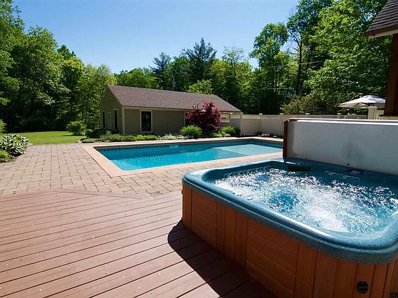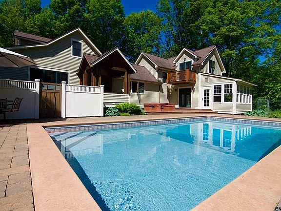 Feel like you're on vacation every day in your own home! Located on a quiet road w/country views, yet only 12 minutes to Broadway! This architect designed cottage sits on 2 landscaped acres. Enjoy the private courtyard w/pool, patio, deck & hot tub for summer fun & entertaining! Two master craftsmen (H Bigelow & E Lowman) did much of the work: front door, skylights, cherry cabinets, window seat & cork floors. Vermont slate, radiant heat & wine cellar. Room for 3rd bedroom suite on 1st floor.