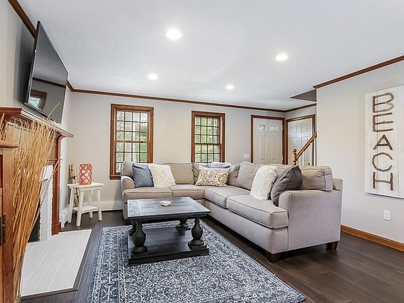 Contemporary Cape In Lovely Pine Bay Estates. Located at the end of a cul-de-sac this 4 bedroom home has access to private Little Island Beach and access to the Shining Sea bike path from the neighborhood. The first floor offers 2 bedrooms, including the master suite, updated kitchen, wood burning fireplace living room, and bright and cheery 3 seasons porch, perfect for those warm summer nights. The upstairs has two additional bedrooms and a full bath. With a full walkout basement, new heating, central A/C, and strong rental history, this home is a must see! Buyer and buyer agents to verify all information here within.