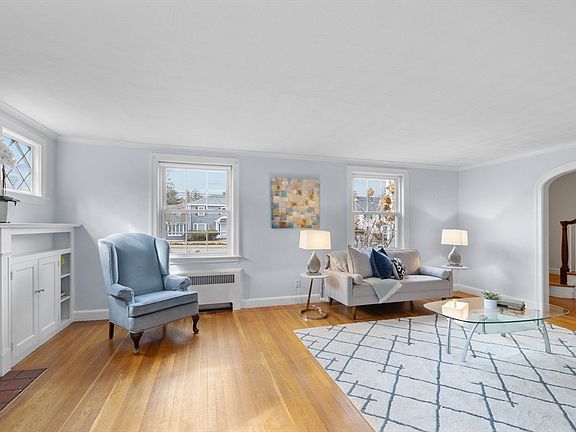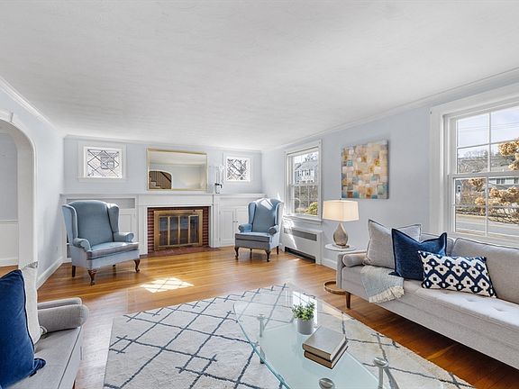 Storybook charm abounds in this timeless 4/5 bed, 2 bath Cape nestled in the heart of Winchester. The first floor features a welcoming foyer leading to a sun-drenched living room complete with hardwood floors, built-ins & fireplace. Adjacent is a formal dining room, spacious eat-in kitchen & a delightful three-season sunroom with sliding doors that open to a spacious deck overlooking the backyard. Convenience is key with a first-floor bedroom & full bath, offering flexibility for guests or home office. Additionally, a versatile den/5th bedroom provides extra space for various needs, whether it be a study area playroom or cozy retreat. Upstairs, 3 bedrooms & a second full bath await. The lower level boasts a finished family room featuring a second fireplace, laundry area, & utility room. The large backyard provides ample space for outdoor activities, while a one-car garage offers convenience for parking & storage. Close to downtown Winchester and Wedgemere Station with service to Boston