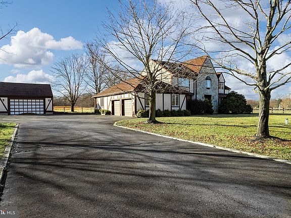 This stately, one-of-a-kind tudor-style colonial nestled on 7.45 acres in beautiful Chesterfield boasts 4,000 square feet of living space, 4 bedrooms, 3 ½ baths and several oversized rooms. The tree-lined driveway and paver patio adds to the distinguished curb appeal this home has to offer. A grand two-story entrance with a curved staircase welcomes you inside. Half bath and coat closet in the foyer. To the left, the large formal dining room features bay window, crown and chair molding. To the right, french doors open to a spacious living room with brick accent surrounding the fireplace. Through the foyer a hallway leads you to a step down great room/family room with floor to ceiling stone surrounding the fireplace, built in shelving, and sliding glass doors. Large eat-in kitchen with tile flooring, tile backsplash, center island, storage pantry, and large picture window overlooking the backyard. Off the kitchen find laundry room, full bath and a first-floor bedroom which can also serve as an office with built in book shelves. Upstairs, three bedrooms await, including the master bedroom with vaulted ceilings, skylight, vanity area, walk-in closet, and master bath with sauna, stall shower, and soaking tub. Additionally, this home features a spacious fenced in backyard with two tiered deck, ample shade and sunlight, a two car detached garage, and two car attached garage. Some specs include dual A/C, 2 furnaces, 2 hot water heaters, automatic Generator, pull down attic access, and forced hot air. This home is being sold as-is, but has endless potential to be your dream home!