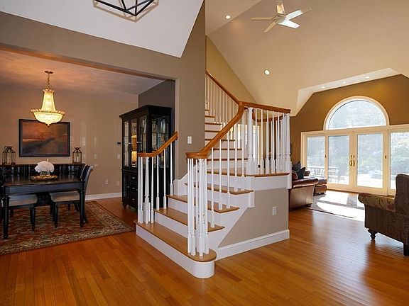 Beautiful & lovingly maintained home on amazing, gorgeous lot in great location features open, welcoming floor-plan. Enjoy privacy & tremendous access to conservation land/hiking trails. Work from home & hike or mountain bike on your lunch hour! Spacious living/family room with vaulted ceilings, stone front gas fireplace & over-sized sliders looks out to lovely yard. Family room opens to eat-in Hickory Kitchen with granite & stainless steel appliances. Roomy master bedroom highlights gorgeous bath & great closet space. Roomy first floor office/den is perfect for work, quiet time or another bedroom; which is conveniently located next to powder room. Large formal dining room is great for entertaining. Radiant heat on 1st floor! Hardwood on first floor in family room, dining room, master bedroom and office/den. 2nd floor has 2 bedrooms, a full bathroom and huge storage space. The nicely finished basement allows for 2nd family room, exercise room, office or guest space. 5 BR Septic.