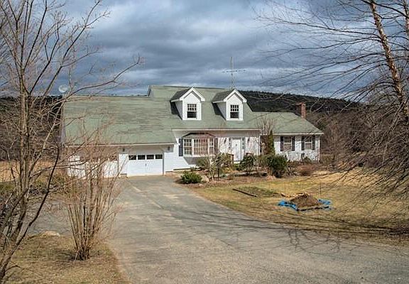 Spacious three-level New England Cape will delight you. 15 rooms total, 3,920 square feet of living space including 4 bedrooms and 4 baths. First floor master suite main residence and in-law or caretaker apartment with private access on lower level. Formal dining room with hardwood floor adjoins heated sunroom. Features include picture-frame windows, fiber optic internet, private water and sewer, wood clapboard siding, oil-fired hot water baseboard heat, large closets, and detached observatory/studio building. Two-car garage with paved driveway attached to house with additional 2-car parking off street. Special trees/scrubs planting area next to house with professional landscaped open land of 2.7+ acres behind with apple trees and numerous wild flowers. Leverett Elementary School, Amherst regional for Middle and High School. Enjoy country life in this spacious home near Leverett Coop. Only 20 minutes to Amherst Center and University of Massachusetts