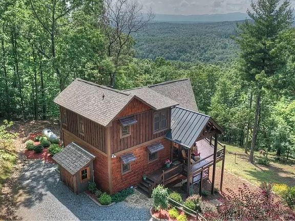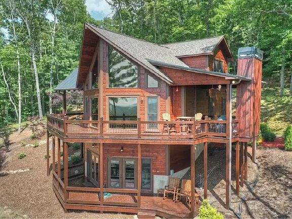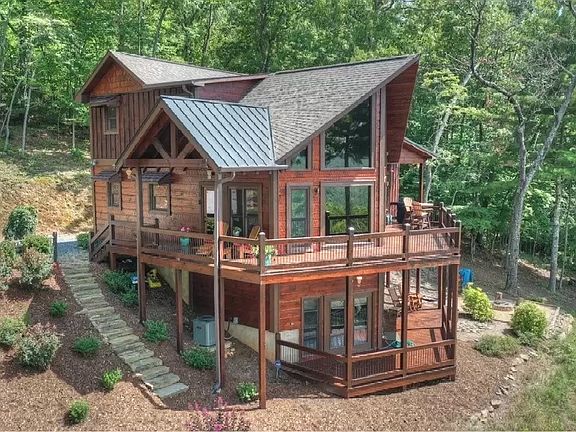 Immaculate **TURN KEY** mountain chalet w/ well established and successful rental history! Wraparound decks overlook large, unobstructed, multi-range mountain views. Rustic retreat is complete with three full bedroom suites, large living, kitchen and dining on the main floor. Stacked stone F/P and walls of glass contour the living room. Hardwood floors and gorgeous natural light flow into the kitchen w/ SS appliances, granite countertops, and solid cabinetry. Upstairs primary suite w/ large walk-in tile shower as well as a lofted office or den space. Terrace level is complete w/ an additional living room/den, game area, walkout basement, and amazing hot tub area. Minutes to the Toccoa River, Downtown McCaysville and Blue Ridge, and on track to GROSS OVER $100K IN RENTAL INCOME FOR 2022, this cabin won't last long. Take in the gorgeous views and call this mountain retreat your own. Inquire today!