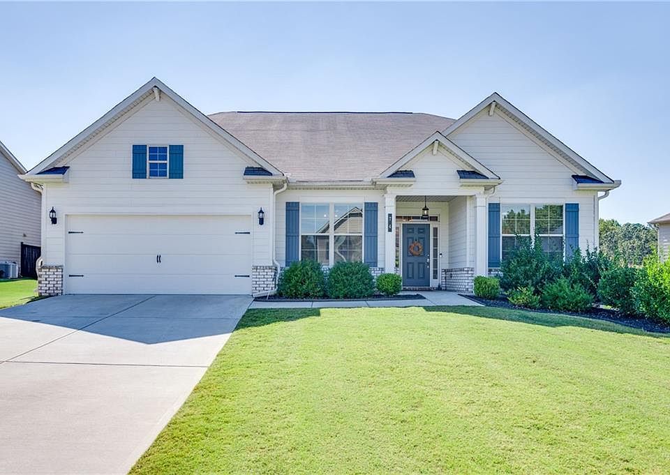 The home you've been looking for in North Paulding High school district with a pool! Popular floor plan with primary bedroom and two additional bedrooms on first floor with a large, private room upstairs that can be a bedroom or a flex room. Enjoy the bright, upgraded kitchen and entertain out back in the covered patio overlooking the pool.