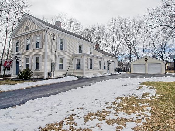 Own a piece of South Hadley history with this 1842 Greek Revival home! All the charm and character you would expect, including a welcoming foyer, beautiful wide plank flooring, dining room with bay windows, fireplaces in the living room and dining room. Many updates - vinyl siding, roof approximately 11 years old, 2 car garage built in 2013, replacement windows, leaf guard gutters, updated kitchen with a breakfast bar and a pantry/laundry, updated bath. There is a bedroom on the first floor that could easily serve as an office. Two attic spaces for loads of storage. Shed/workshop off back of garage and plenty of parking.