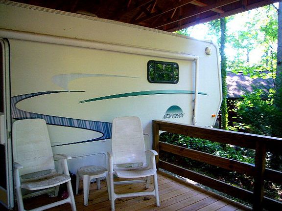 End of road cabin nestled in the woods not far from Cherokee, the Casino and Great Smoky Mountain National Park. Great spot to chill out and enjoy some of the amenities that are offered at Flaming Arrow Campgrouund. You own the lot and pay annual dues which include water and sewer. Very private location and a great place to vacation being located between Bryson City, Sylva and Cherokee. Amenties include Pool, Laundry and Game Room, Playground and picnic areas. The lot and RV to the right of this property is also for sale.