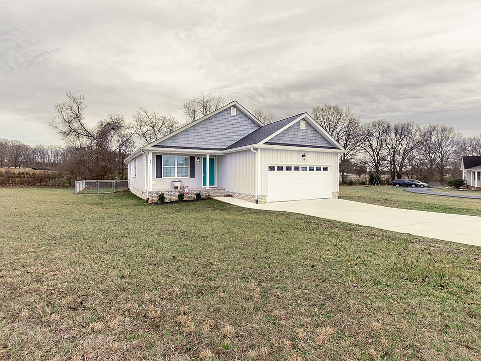 ******Back to Active Status, due to financing. Listed in USDA Eligible Area for 100% RD financing!*** Almost new, huge lot and fenced yard for pets! What more could you ask for in this one-level home? Open floor plan with a vaulted ceiling, custom cabinets in kitchen with soft close cabinet hinges and drawer slides, along with granite countertops and upgraded stainless appliances (all kitchen appliances included in the sale), owner's suite with walk-in closet that has upgraded built-in shelving. Both bathrooms have granite counters and soft-close cabinet hinges and drawer slides. And don't miss out on the covered front and back porches! 2 car attached garage and concrete drive. All at a fantastic price point!