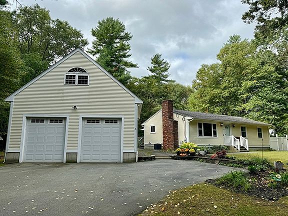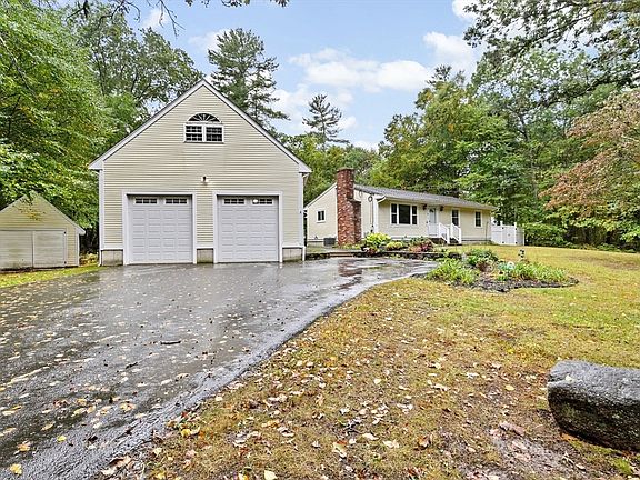 This is a great 3-bedroom 1.5-bath ranch with fireplace, new furnace and central a/c this year, and newer windows! Eat-in kitchen has brand new butcherblock countertops, stainless-steel appliances and a giant picture window, letting the light shine in! Living room with wood-burning fireplace, and three bedrooms (with passing Title V!). There is a bonus room in the basement which could be used as a playroom, office, gym, etc with its own additional half bath. This property has a propane-heated garage bigger than the house with 10-foot overhead doors, and a loft ready to be finished. Any car enthusiast will appreciate this space that can fit a lift,and is outfitted with all the compressor lines and space you need! Great yard on a quiet country road, but minutes to highways, and within 20 minutes of two commuter rail stations.