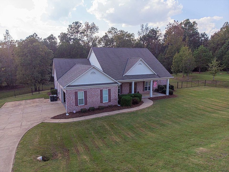 Welcome to this beautiful HC home! This one Level Brick home sits on an expansive fenced in 3+ acre lot. Inside has an open floor plan, wood floors, barnwood accents throughout, matching appliances, granite counter tops and antiqued cabinets bring it all together. The master bedroom has high ceilings double vanity in the bathroom Large soaking tub, and as a bonus the master bedroom has a separate dressing / vanity area with a second large walk in closet. Benefit from a recently added covered back patio with stunning red wood ceilings! With all this and much more this home is a definite must see!