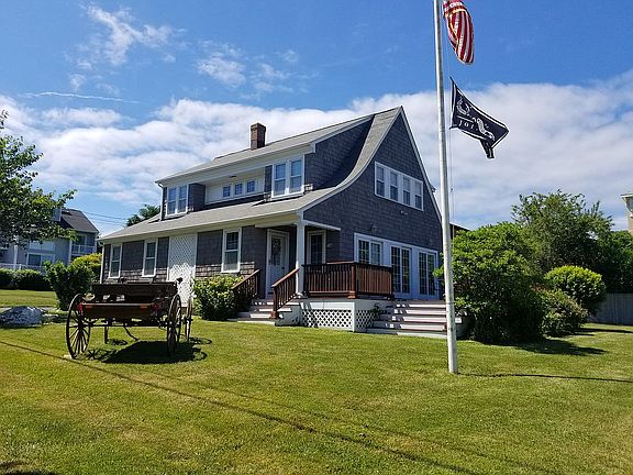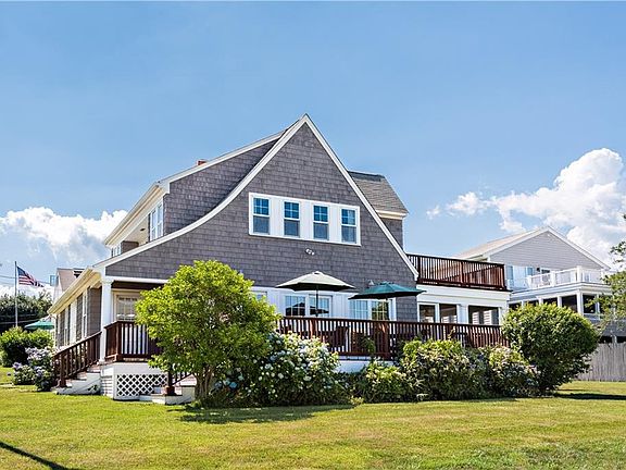 Experience the nostalgia of yesteryear of easy relaxed days at the beach at this 1920's charming cottage rebuilt in 1997 to offer comfortable, contemporary living just steps from beautiful Narragansett Bay and Bonnet's "Little Beach"! Come home from a day of sun and surf to play a game of croquet or badminton on the lush lawn of this over-sized lot, or enjoy beautiful views of the water from your 442 sq. ft. deck accessed from a wall of sliders in the living/dining room, or from the relaxing and peaceful screened porch off the kitchen. You will enjoy hardwoods throughout the first floor, crown molding, central air, a first floor master suite, a spacious 2nd floor suite that opens to a rooftop deck where you can view the lights of the Newport Bridge or the streaking sunset colors, all in move-in condition. There's even a bunk room on the rear side of the 2 car garage. Sound like a dream from another time? It is..and it's where you want to be to start your own memories! No flood insurance required.
