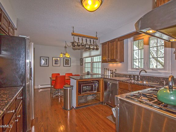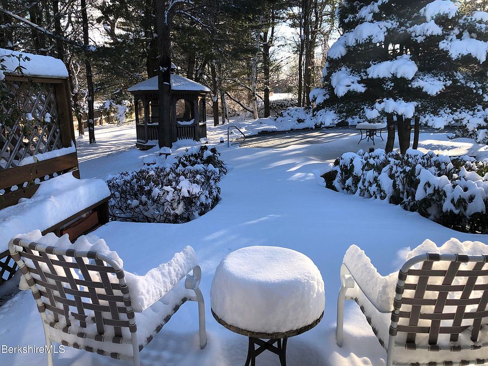 Behind this desirable Ranch lies a private paradise. Lush, manicured landscape features specimen plantings and shelter to colorful bluebirds and a vast variety of other feathered friends. Wake to their morning songs and sip your coffee amongst the incomparable beauty of your private kidney shaped in-ground pool with winding walkways, gazebo and decking. Inside you'll find easy one level living with hardwood floors, cozy fireplace and an inviting library overlooking the natural vista beyond. A private entrance leads to the attached guest quarters that affords room for family, in-laws, aides, au-pairs or income production from a registered B&B guest suite. There's more... a 3 car attached garage, finished lower level hobby/ recreation space, an amazing loft with grand piano. Filled with natural light and overlooking the vista below, this space inspires one to paint, read, dance or simply dream away the afternoon. Located minutes to Lenox center, Tanglewood and all local cultural attractions. It is an ideal primary or vacation home option that is truly welcoming. Come see.