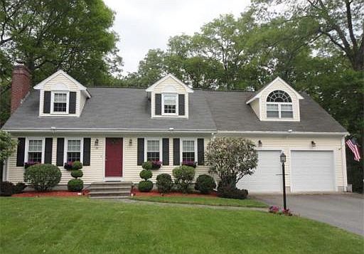 Beautiful expanded cape in pristine condition located in quiet cul-de-sac neighborhood. Home offers expansive master suite with cathedral ceiling, walk-in closet and spacious master bath boasting double sinks w/granite counters, whirlpool tub and separate custom tiled shower.The laundry is conveniently located on 2nd level with 3 additional bedrooms, 2nd full bath, office space & walk-in hall closet. First floor has open floor plan featuring a modern kitchen w/recessed & under cabinet lighting, breakfast area, center island, large pantry, custom cabinets w/built in desk open to family room. Living room w/marble fireplace is open to formal dining room, both w/solid oak hardwood floors. Large deck wired for sound, has a built in TV and a retractable awning & overlooks a picturesque private wooded backyard with patio. Oversize 2-car garage with mudroom & walk-in closet has lots of room for storage. Too many updates to mention. Highly desirable neighborhood close to RT95 & commuter rail.