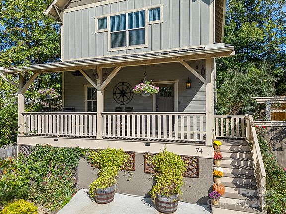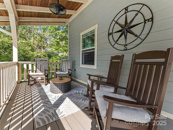 Welcome to this Exceptional Arts & Crafts home located just minutes from charming downtown Black Mountain. From the moment you arrive, you’ll be drawn to the inviting rocking chair front porch where you can relax and take in the breathtaking mountain views! Step inside and notice the attention to detail and craftsmanship throughout. The home features rich engineered hardwood floors, warm tones, and an open floor plan that flows easily between the living, dining, and kitchen areas, ideal for entertaining or simply enjoying everyday comfort. At the heart of the home, the chef’s kitchen impresses with stainless steel appliances, custom cabinetry, granite countertops, a pantry, and a large breakfast bar perfect for casual meals or morning coffee. The adjoining dining area provides the perfect gathering space for hosting guests, seamlessly connecting to the great room, where a gas fireplace surrounded by custom-built-ins creates a cozy and welcoming atmosphere. From the great room, step outside to the spacious back deck, thoughtfully designed for outdoor living. Here, you can entertain with ease or unwind while listening to the soothing sounds of the water feature. As evening falls, gather around the natural gas firepit. Upstairs, the primary suite is a peaceful retreat featuring abundant natural light, a custom walk-in closet, and a spa-inspired ensuite with travertine tile shower and a double vanity. A second bedroom with a built-in Murphy bed offers versatility for use as a guest suite, home office, or home gym and jack and jill bath with travertine finisheoffers s. A Third bedroom has endless possibilities! This home’s thoughtful design extends to every detail—from its custom storage solutions to its warm architectural character and easy flow between indoor and outdoor spaces. The exterior has been well maintained, with beautifully landscaped surroundings that complement the natural mountain setting.