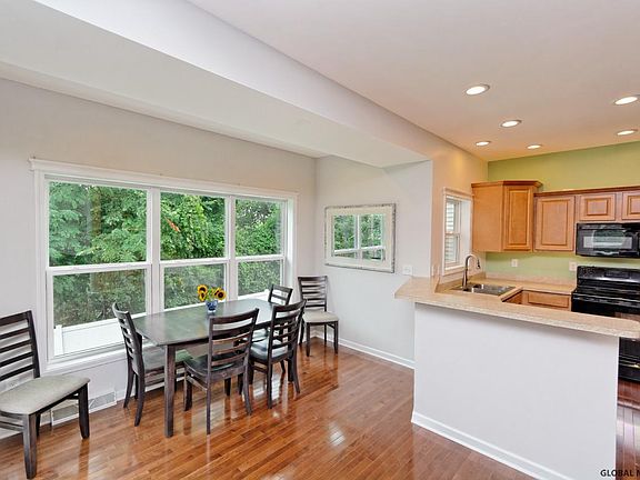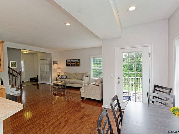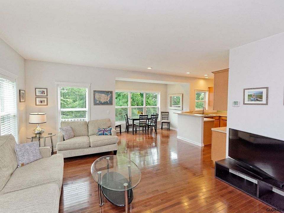 Meticulous 3 years young colonial style end unit townhouse. Featuring: Open floor plan,tall ceilings, spacious modern kitchen, plenty of natural light, gleaming hardwood floors, spacious walk out basement w/ sliding glass door and full size windows. 3 spacious bedrooms, 2.5 baths, master suite w/ walk-in closet and it's own bathroom, second floor laundry room, 2 car garage attached. Spacious private yard. Set in a quiet community just minutes to schools, shopping and Albany. East Greenbush schools ! Superior Condition