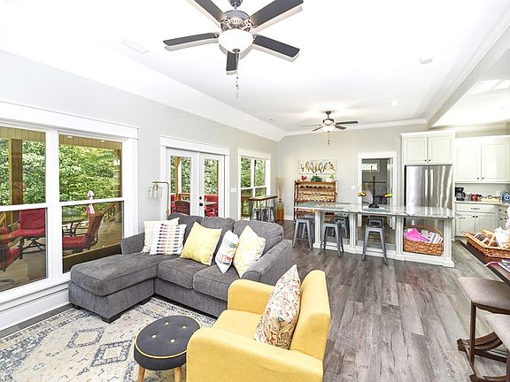 Own a slice of paradise AND let it $$$ for itself! This incredible (almost new) construction home is a vacation rental for HALF of the year for the last 3 years and allows the owners to entertain family and friends for the remainder half. It is being sold just as you see it, COMPLETELY FURNISHED, truly a turn-key operation. It sits inside White Oak Creek Subdivision and offers year-round amenities including a clubhouse, boat ramp, 2 community pools, etc. The homeowners spared no expense and thought of it ALL during construction, the home features luxury vinyl plank flooring throughout, a HUGE granite gathering table in the kitchen, extra linens/toiletries/staple items for a quicker turnaround, gas grill, outdoor pit and chairs, additional storage underneath, and the list goes on. Let's not forget the very best part, it has 100 feet of water edge overlooking White Oak Creek, with the lot allowing just enough privacy for the home but having the pleasures of owning a waterfront lot.