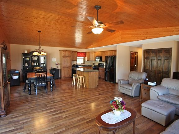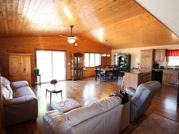 Enjoy Harriet Lake views, five acres, surrounded by and adjoining, thirty three acres of state land. Features you will appreciate, in this three bedroom, three bathroom home are, the large open concept and high wooden ceilings, the hardwood flooring throughout the main level, the large living room area, the fully appliance kitchen and informal dining space, the full, walk out, lower level with family room, wood burning fireplace and an additional space for office. The four stall heated and insulated garage is perfect when your in need of more storage for lake toys and a large deck.