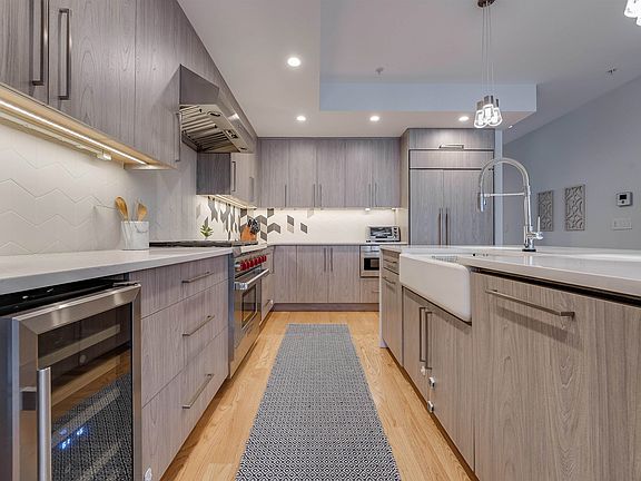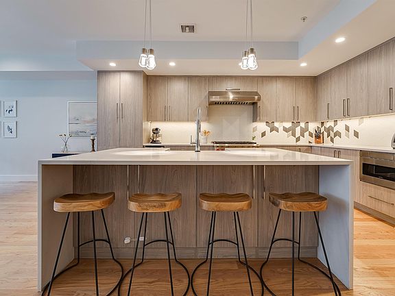 Beautiful triplex w/ over 3,300 sq ft w/ 5 bedrooms, 3 bathrooms, and a huge private yard in downtown Hoboken. On the main level you will find the spacious kitchen complete with custom cabinetry, a Wolf range, a new wine refrigerator, and a Caesarstone waterfall island. The kitchen is open to the living and dining areas. Off the living area there is a large balcony leading to the private yard which is perfect for entertaining. There are two bedrooms and a full bathroom located on the main level as well. On the upper level you will find the massive main bedroom complete with a custom walk-in California closet and en suite bathroom with a double vanity. There are two additional well sized bedrooms on this level, an additional full bathroom, and a laundry room. On the ground level there is an additional room adjacent to the yard which can be used for a gym, playroom, and storage. This smart home also features dual zone central ac, custom blinds, in wall Sonos speakers on main floor, and tons of storage. Must see!