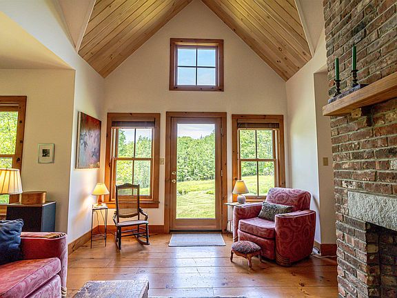 OFFER DEADLINE ON MONDAY, 6/9 @ 12:00PM. Open concept with dramatic, vaulted ceilings and striking fireplace, this custom-built Cape features spaces that draw you in. U-shaped kitchen with updated stainless appliances, gas range, solid granite counters, tiled backsplash & custom wood peninsula. Potential first floor bedroom currently used as music room, but could be easily adapted with the addition of French doors. Up the staircase you'll find clever built-ins brimming with books and balcony open to the spaces below. Excellent floor & closet space in the primary BR. 2nd BR currently set up as office overlooks front yard. Delightful den provides overflow space for guests or for watching a favorite film. The grounds feature stone walls, loads of daffodils in the spring and ample space for gardens galore. High posted, walk-out basement has expansion potential. Thoughtfully sited to maximize cooling shade in the summer and abundant natural light, you'll love watching the seasons change over the peaceful property. The pictures simply don't do this special property justice! Designed by award-winning architect, Molly McGowan, this is the charmer you've been waiting for! Final Open House on Sunday, 6/8 from 11am-1pm