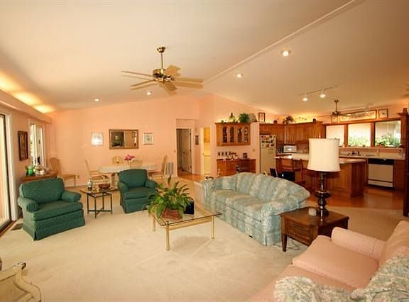 Balboa Lake, flat driveway and lot, large point lot with bird sanctuary to the left of lot, back patio and sunroom face north. Very open plan with divided bedrooms and large, cheerful sunroom and kitchen island. LOTS of windows in this one level, one owner, well-maintained home. Very nice landscaping with good trees, but plenty of light. Irrigation system from lake. See agent remarks.