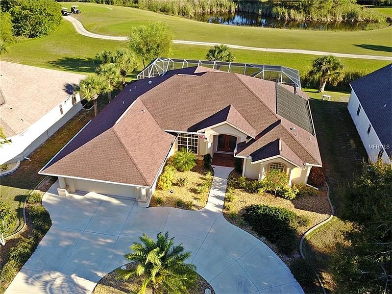 No need to look any further...this elegant and immaculate 3 bedroom with 2 and 1/2 bathroom pool home has it all! Located on the 8th hole of the Long Marsh Golf Course this exquisite home has mature tropical landscaping with a huge lanai and pool. The lanai boasts 2 private sitting areas overlooking the gorgeous pool that provides enough length to actually swim laps. A circular driveway is an added bonus for both the added curb appeal to this home and the hassle free parking and space provided for vehicles. Here are some of the things that make this home spectacular and a must see: the double door entry, crown moldings, modern high-flat tray ceilings, beautiful light fixtures, pocket sliding glass doors, views of the golf course and pool from nearly every room, breakfast nook with aquarium glass, plenty of counter top and cabinet space in the kitchen with a built in wine rack, stainless steel appliances, open floor plan, master bedroom provides 2 walk-in closets, master bathroom has both a garden soaking tub and an impressive large walk through Roman shower, heated salt water pool, and a 1/2 bath with access to the pool and lanai. You must view this home in person to see all it has to offer! Also, there are 2 guest bedrooms and one has a slider to access a private lanai overlooking the pool. You feel as if you have stepped into your own resort vacation with the feel and comfort of everything that makes a house your home. Schedule your appointment to see this one today.