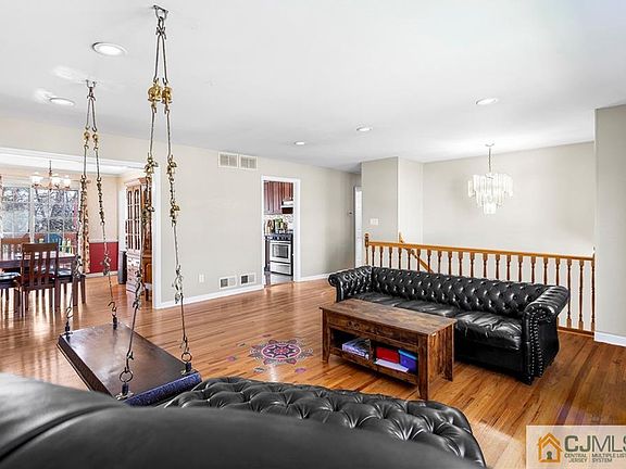 This home boasts an array of features that combine comfort, style, and functionality. One standout feature of this home is the ownership of Tesla solar panels installed in 2021, an investment that not only contributes to a sustainable lifestyle but also yields significant savings on electricity bills. Hardwood floors flow throughout the living and dining rooms and beyond. The updated kitchen is a chef's delight, boasting cabinetry reaching to the ceiling, granite countertops, stainless steel appliances, and a convenient breakfast bar. The primary bedroom features hardwood floors, access to the large deck, recessed lighting, and an updated en suite bathroom. Two additional bedrooms and an updated hall bathroom complete the upper level, each showcasing hardwood floors. The large deck spans the entire back of the home with access from dining room, kitchen and primary suite. Descend to the lower level, where a spacious den awaits with wood laminate flooring, a cozy wood-burning fireplace, surround sound and slider to large patio and fenced yard. A large bedroom and newly renovated full bathroom and laundry room complete the lower level. Additional features include a forced air, gas heating and cooling system refurbished in 2023, a tankless hot water heater installed in the same year and an upgraded electric panel. Home is located less than 5 miles to South Amboy train and ferry and less than 10 miles to MetroPark.